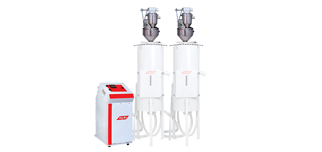 After completion of both cycles, primary as well as secondary, the controller checks at which station material is required. If the primary loader doesn’t need more material, the controller will switch over the loading to the secondary loader and vice versa. If both stations do not require material, after a set delay time vacuum blower stops. Whenever the material is required by any station, the blower starts again and works as per the above sequence.